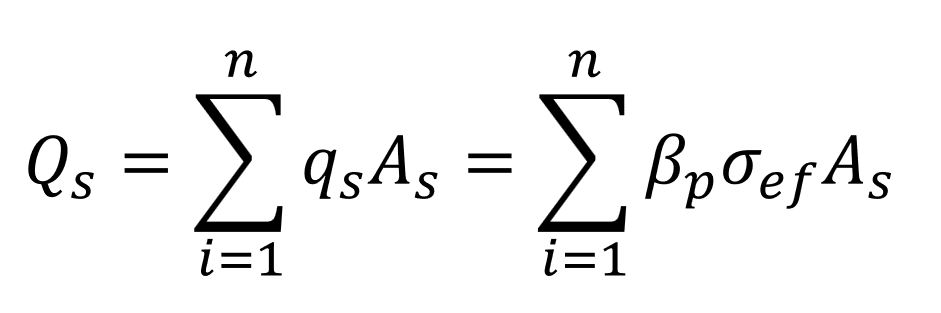 En suelos cohesivos o friccionantes, la capacidad de carga del suelo esta dada por la siguiente expresión.